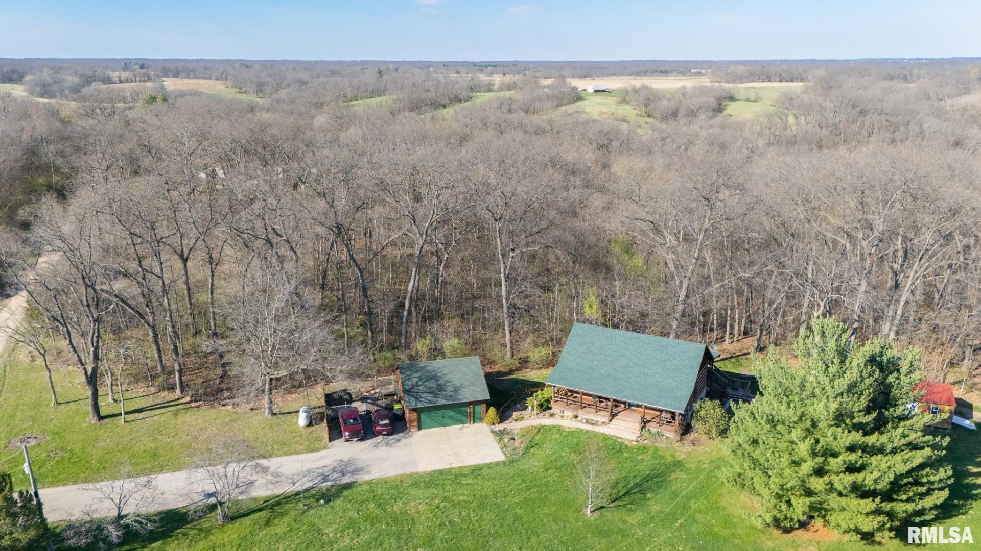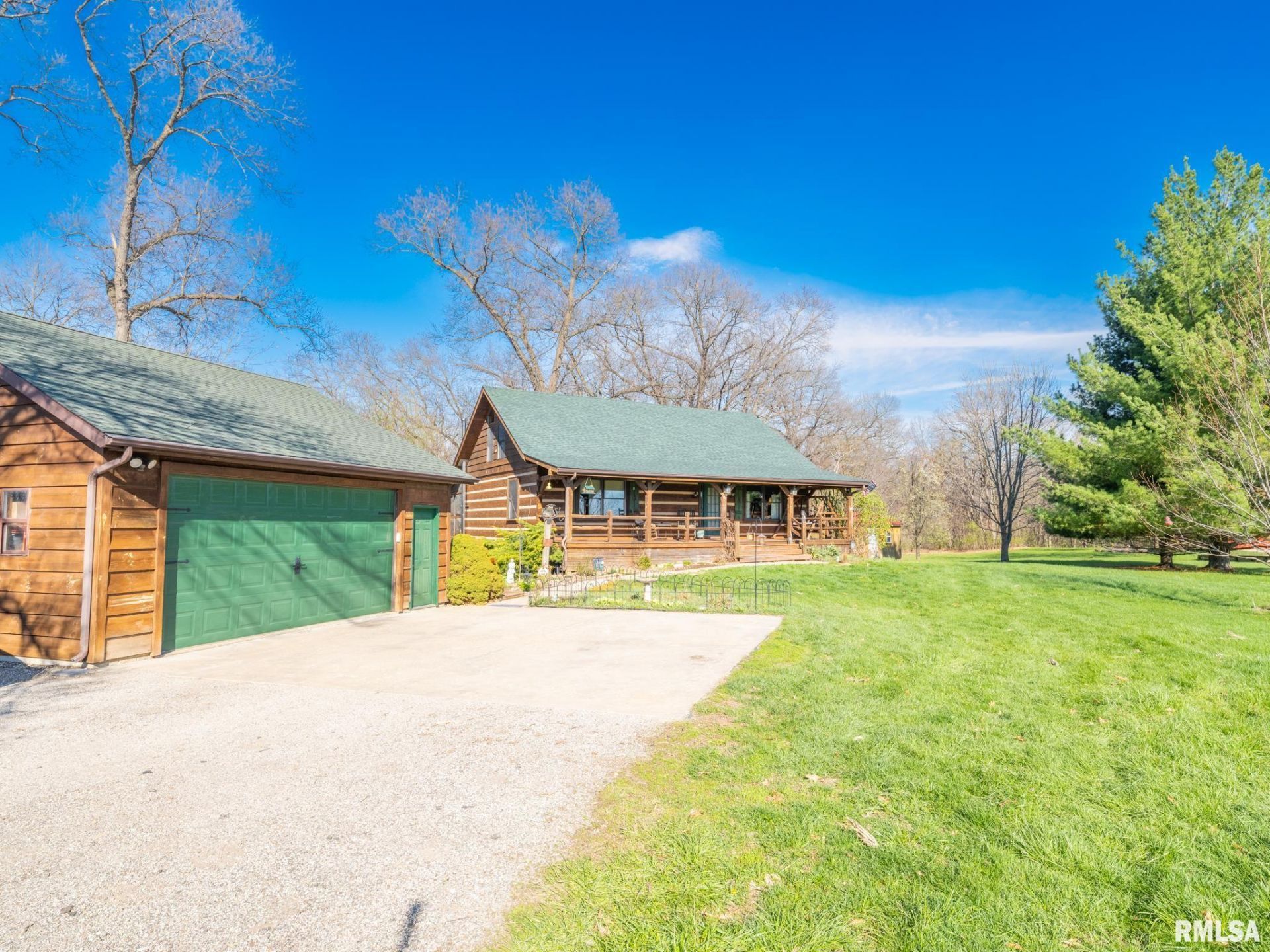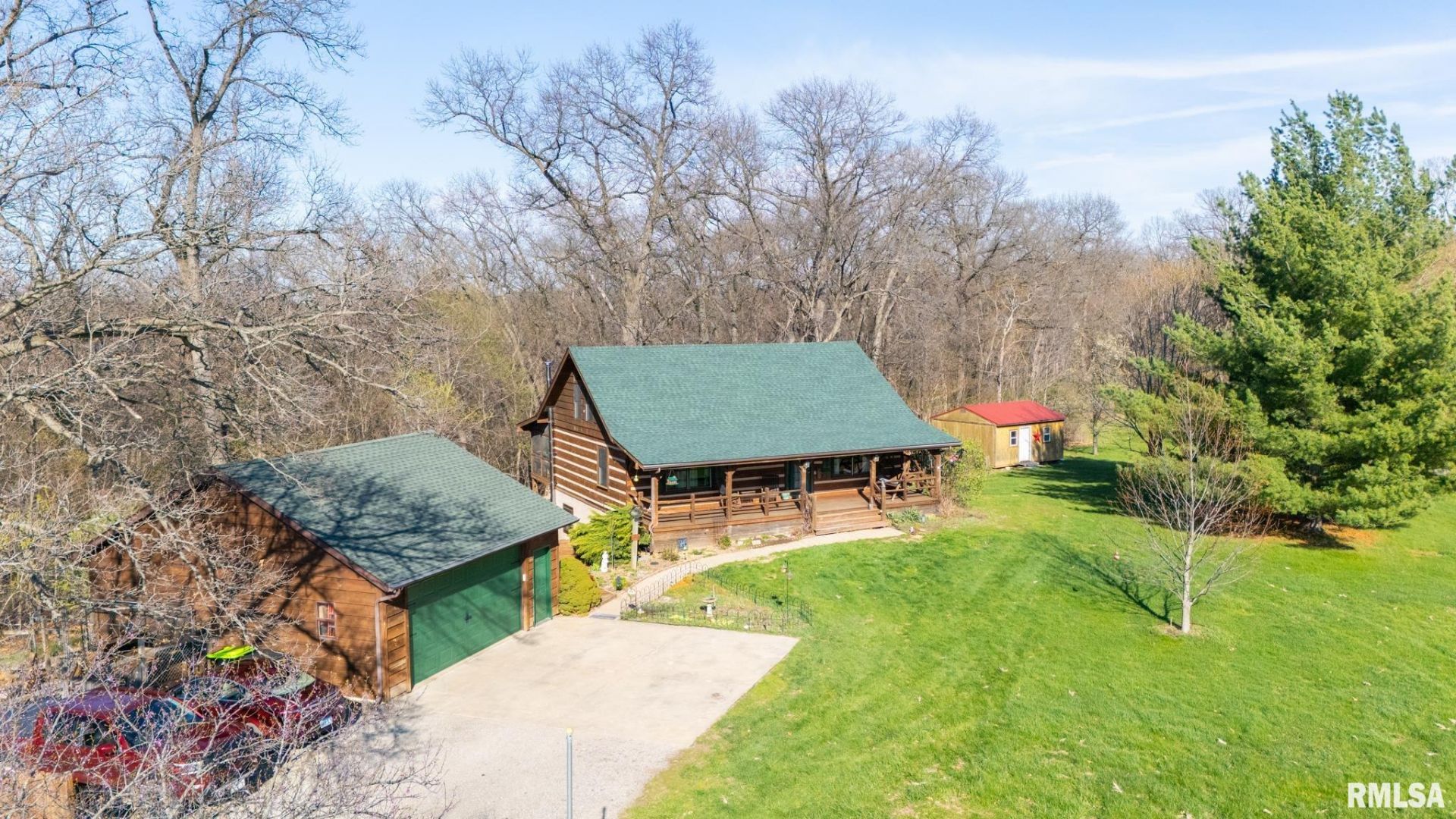 If you have been looking for a Beautiful Log Cabin home in the country with spectacular views, Come see this exquisite find! This home is nestled on a dead end road with a lovely park like front yard and gorgeous wooded acreage for your back yard view! This is an outdoor dream perfect for hunting, hiking, yoga on the back screened deck, hosting family and friends, and just enjoying Nature at its finest. The home greets you with a charming covered porch for watching the sunsets. Grand Open floor plan with living room, kitchen, center island, sitting nook with a wood burning stove, Primary suite with walk in closet, jacuzzi tub, walk in shower, and laundry facilities. Upper loft is 14x30 and could be office/gym/guest room. The beautiful, walk out basement is currently being used as an apartment that you can enter from the newly built boardwalk between garage and home. It has been renovated with a lovely Living room, full kitchen, bathroom, laundry/storage room, and 2 generous sized bedrooms. You could use this as income potential or as your own personal finished basement, as it has access from inside the home as well!! Large oversized 2 car garage and Shed for extra storage. All appliances in both kitchens and laundry areas stay!!